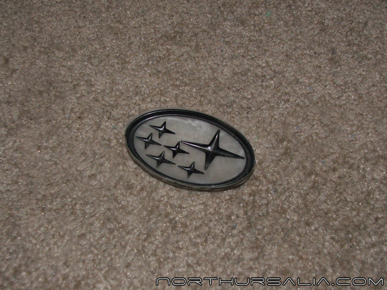 Start by prying your grill badge (gently) off of your grill. The remains of the adhesive will be on the back, and you need to remove it. A fingernail usually works well.