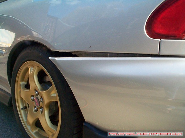 A close up of why the Version 6 Spats do not fit flush against the Version 2 bumper- they were made to fit the curved lip on the Version 6 rear bumper. This is the left side spat...